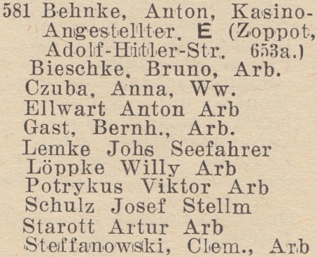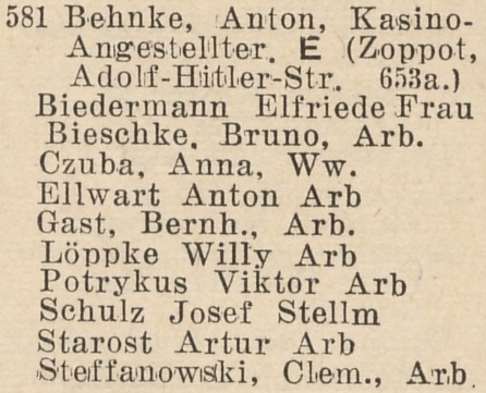 Anton Behnke. Książka adresowa z 1942 roku. Zbiory Pomorskiej Biblioteki Cyfrowej.