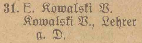 Kowalski. Książka adresowa gminy Oliwa z 1915 roku. Zbiory Pomorskiej Biblioteki Cyfrowej.