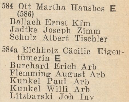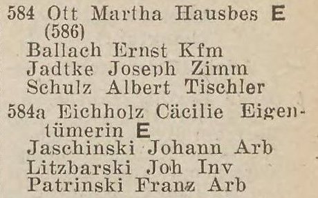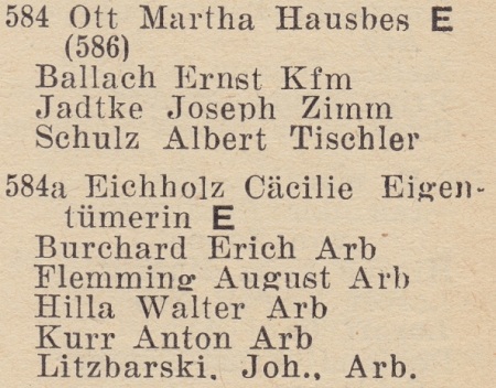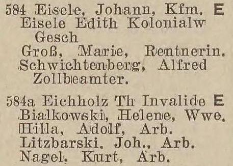 Adres: Adolf-Hitler-Straße 584A. Cecylia Eichholz zd. Littwin (ur. 1875, zm. 05.02.1942 - grypa). Źródło: , 02.1942 poz. 14.