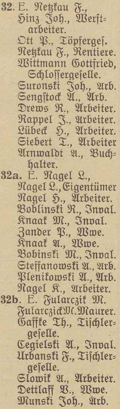 F. Netzkau. L. Nagel. M. Fularczik. Książka adresowa gminy Oliwa z 1910 roku. Zbiory Pomorskiej Biblioteki Cyfrowej.