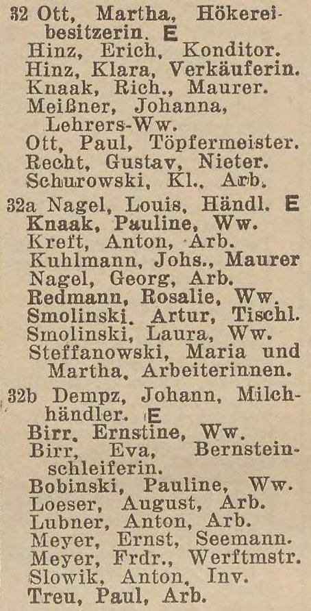J. Hintz. L. Nagel. M. Fularczyk. Książka adresowa gminy Oliwa z 1909 roku. Zbiory Pomorskiej Biblioteki Cyfrowej.