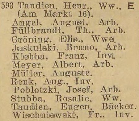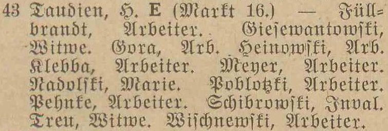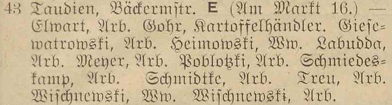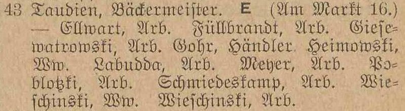 Taudien. Książka adresowa gminy Oliwa z 1916 roku. Zbiory Mirosława Piskorskiego.