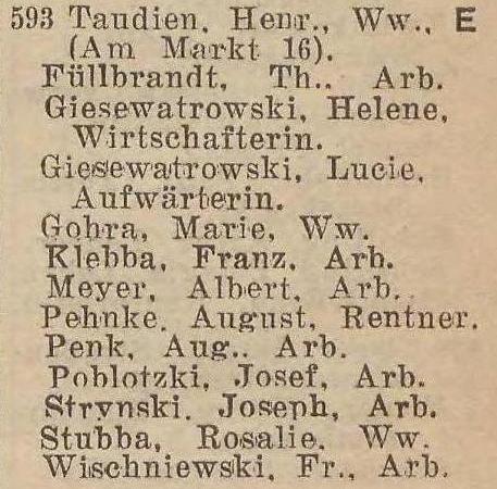 Adres: Adolf-Hitler-Straße 593. Józefa Pobłocki zd. Witzling (ur. 1858, zm. 10.10.1943 - uwiąd starczy). Źródło: , 10.1943 poz. 85.