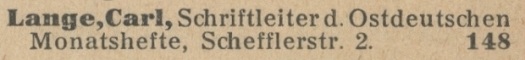 Carl Lange. Książka adresowa z 1939 roku. Zbiory Krzysztofa Gryndera.