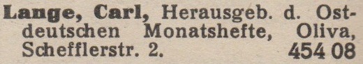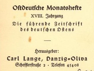 "Ostdeutsche Monatshefte", czasopismo drukowane w Berlinie przez Georga Stilke, Danzig Langgasse 13 (ul. Długa). Miesięcznik, którego ambicją była kulturalna walka o "niemiecki wschód". Wydawane było w latach 1920-1939, do roku 1923 pod nazwą "Ostdeutsche Monatshefte für Kunst und Geistesleben" przez Carla Lange, założyciela, publicystę i pisarza, z którego pióra wychodziło wiele artykułów. Mieściło się przy ul. Schefflerstraße 2 w Oliwie (ul. Hołdu Pruskiego 2). Organami sprawczymi był Niemiecki Związek Ojczyźniany w Gdańsku i zrzeszenie niemieckich towarzystw naukowych i kulturalnych, działających w Polsce.