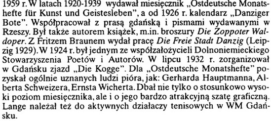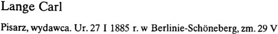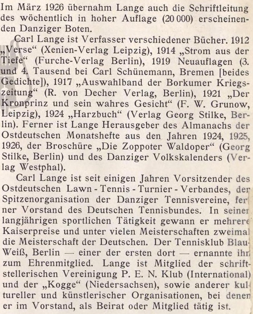 Carl Lange wydawał również , początkowo we współpracy z wydawnictwem "Orveda" a od około 1930 roku samodzielnie.