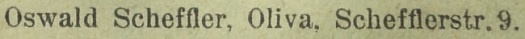 O. Scheffler. Reklama. Książka adresowa gminy Oliwa z 1920-1921 r. Zbiory Pomorskiej Biblioteki Cyfrowej.