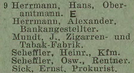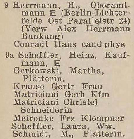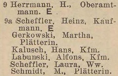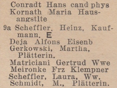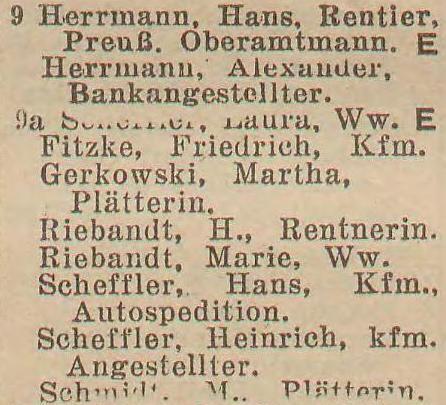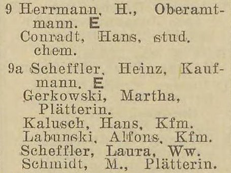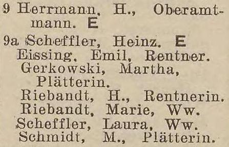 W domu przy ówczesnej Schefflerstraße nr 4 w Scheffler (2 osoby).
