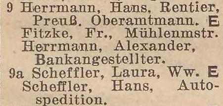 Hans Herrmann. Laura Scheffler. Książka adresowa z 1929 r. Zbiory Pomorskiej Biblioteki Cyfrowej.