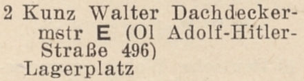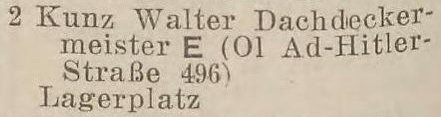 Do co najmniej 1942 roku pod nr 2. znajdował się plac magazynowy należący do dekarza Waltera Kunza zamieszkałego naprzeciwko przy Adolf-Hitler-Straße 496 (al. Grunwaldzkiej 496). Obecnie w tym miejscu stoi budynek nr 3.