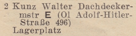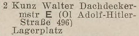 Walter Kunz. Książka adresowa z 1939 roku. Zbiory Krzysztofa Gryndera.