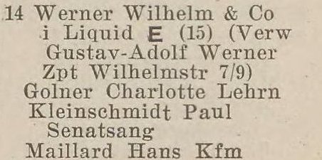 Wilhelm Werner. Książka adresowa z 1939 roku. Zbiory Krzysztofa Gryndera.