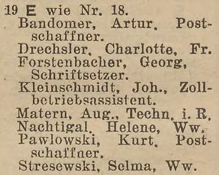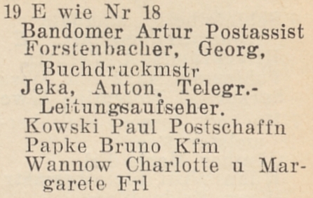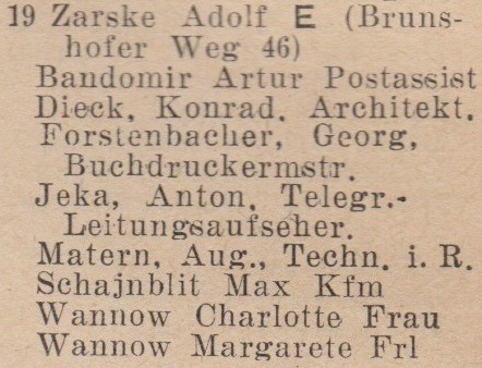 W latach 1931-1938 właścicielem budynku nr 18-19 był Adolf Zarske.