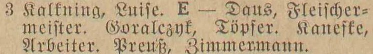 Hermann Kalkning. Książka adresowa gminy Oliwa z 1913 r. Źródło: Mieszkańcy Jelitkowa - 1909-1925. DawnaOliwa.pl.