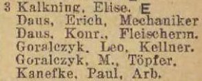 Elise Kalkning. Książka adresowa z 1926 roku. Ze strony: wiki-de.genealogy.net.