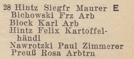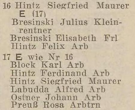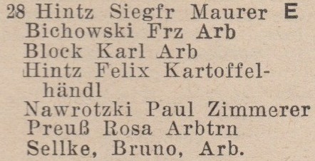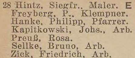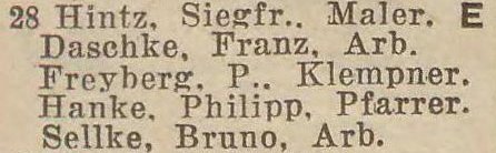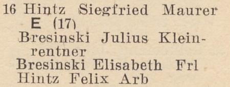 Siegfred Hinz. Książka adresowa z 1926 roku. Ze strony: wiki-de.genealogy.net.