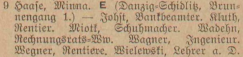 Rinna Haase. Książka adresowa gminy Oliwa z 1914 roku. Zbiory Pomorskiej Biblioteki Cyfrowej.
