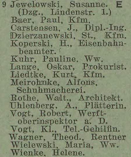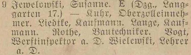 Susanne Jewelowski. Książka adresowa z 1927 roku. Zbiory Pomorskiej Biblioteki Cyfrowej.