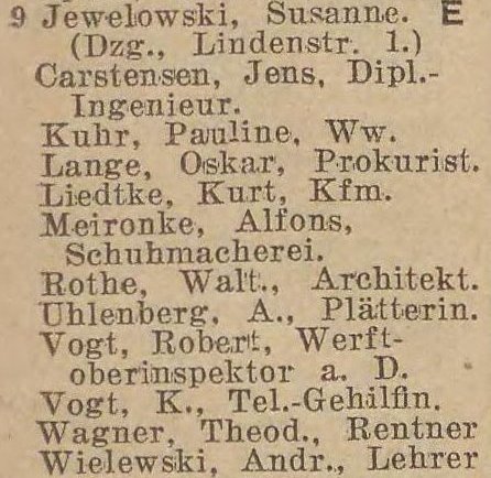 Susanne Jewelowski. Książka adresowa z 1929 roku. Zbiory Pomorskiej Biblioteki Cyfrowej.