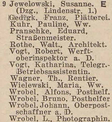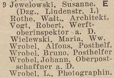 Susanne Jewelowski. Książka adresowa z 1926 roku. Zbiory Pomorskiej Biblioteki Cyfrowej.