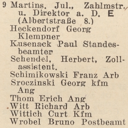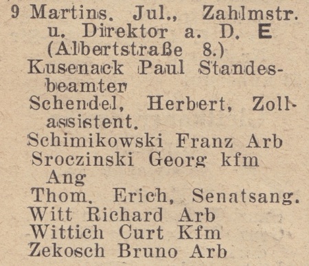 Julius Martins. Książka adresowa z 1931 roku. Zbiory Pomorskiej Biblioteki Cyfrowej.