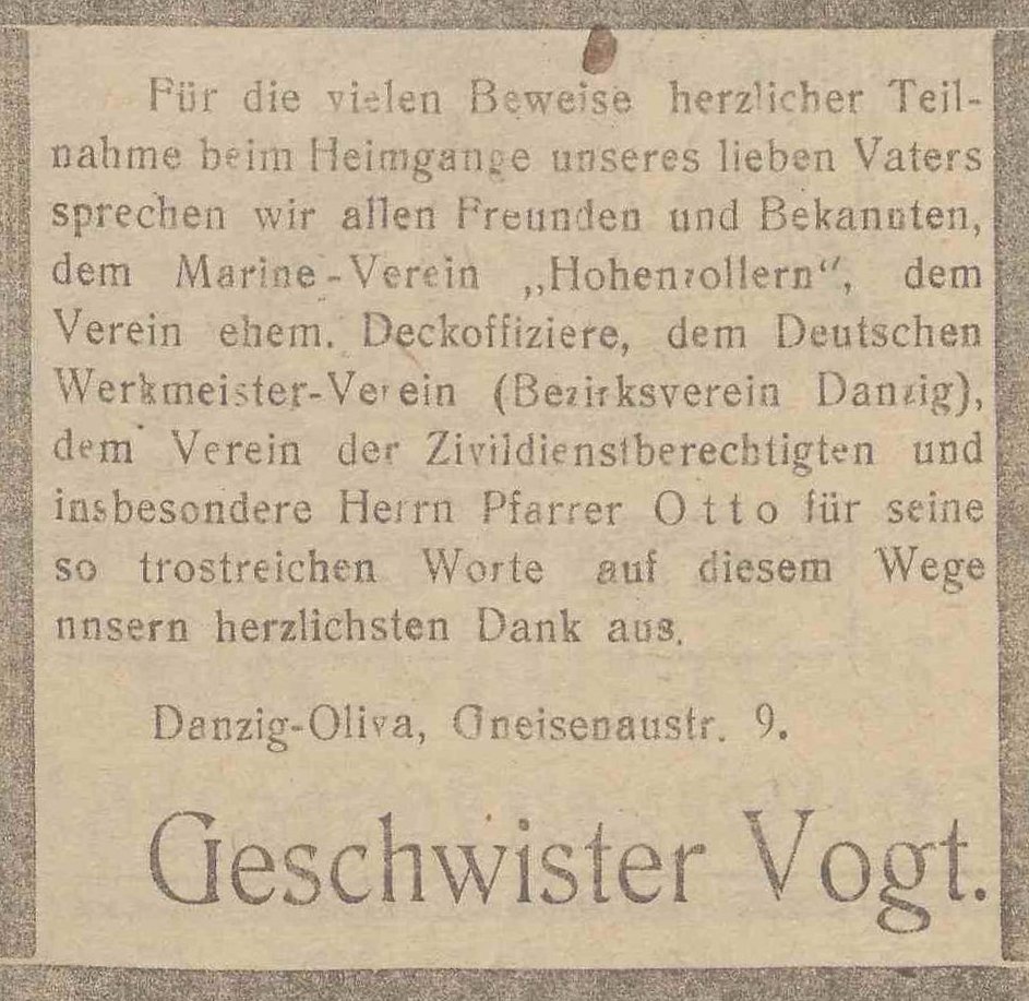 Geschwister (rodzeństwo) Vogt. Olivaer Zeintung nr 244 z 16. 10. 1928 r.