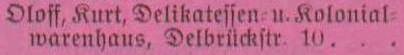 Kurt Ollof. Kolonialwarenhandlung. Ksi¹¿ka telefoniczna z 1916 roku. Zbiory Miros³awa Piskorskiego.