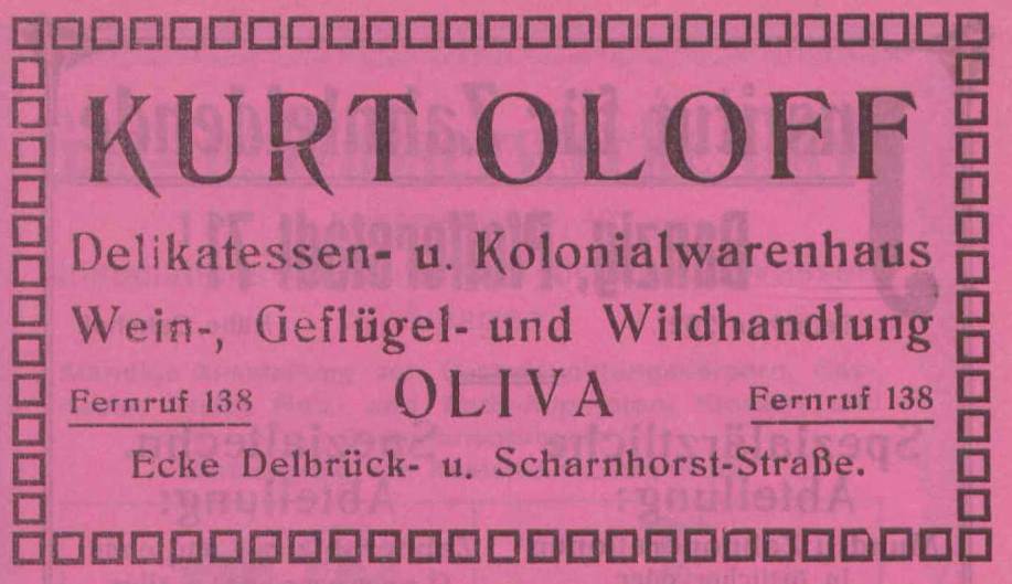 Kurt Ollof. Reklama. Ksi¹¿ka adresowa gminy Oliwa z 1920-1921 r. Zbiory Pomorskiej Biblioteki Cyfrowej.