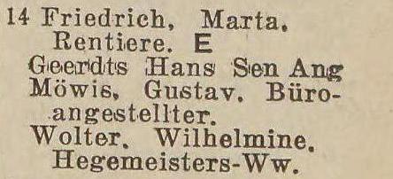 Marta Friedrich. Książka adresowa z 1929 roku. Zbiory Pomorskiej Biblioteki Cyfrowej.
