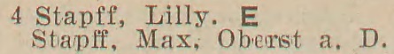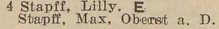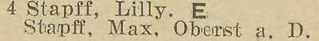 Lilly Stapff. Max Stapff. Książka adresowa z 1933 roku. Zbiory Pomorskiej Biblioteki Cyfrowej.