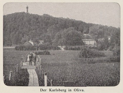 W głębi zabudowania dworku gminy Oliwa. Ostseebad Zoppot Broschüre 1909. Przekazała Grażyna Niemyjska.