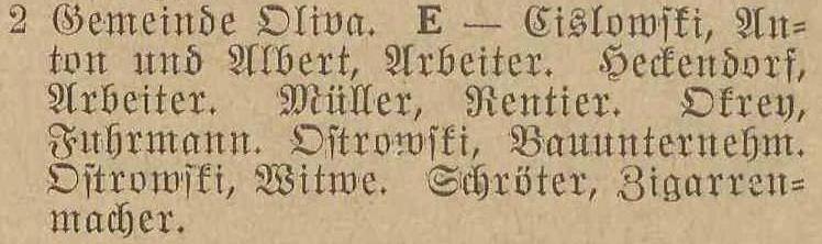Gemeinde Oliva. Książka adresowa gminy Oliwa z 1916 roku. Zbiory Mirosława Piskorskiego.