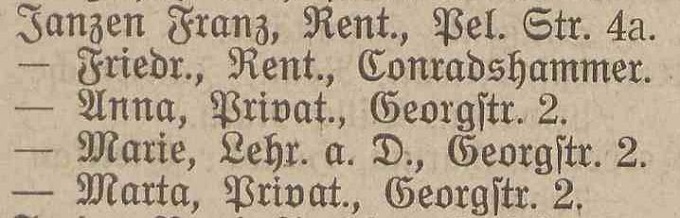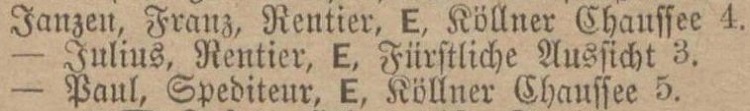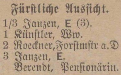 W 1902 roku letników przymował Janzen (Julius) - 1 osobę. Fürstliche Aussicht 3 ().