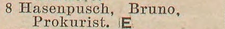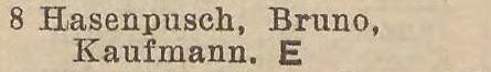 Bruno Hasenpusch. Książka adresowa z 1931 roku. Zbiory Pomorskiej Biblioteki Cyfrowej.