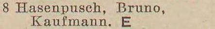 Bruno Hasenpusch. Książka adresowa z 1929 roku. Zbiory Pomorskiej Biblioteki Cyfrowej.