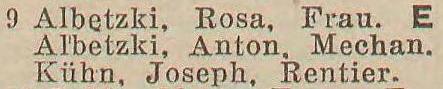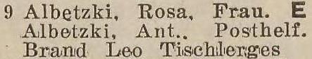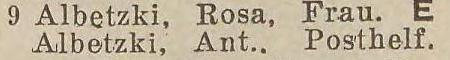 Rosa Albetzki. Książka adresowa z 1929 roku. Zbiory Pomorskiej Biblioteki Cyfrowej.