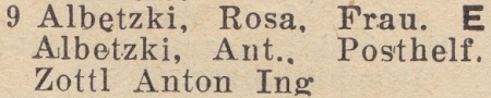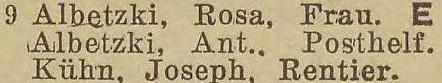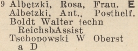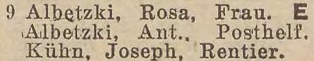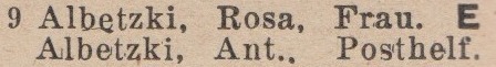 Rosa Albetzki. Książka adresowa z 1931 roku. Zbiory Pomorskiej Biblioteki Cyfrowej.