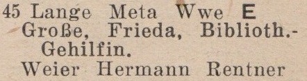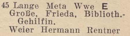 Meta Lange. Książka adresowa z 1942 roku. Zbiory Pomorskiej Biblioteki Cyfrowej.