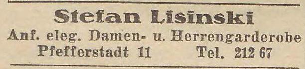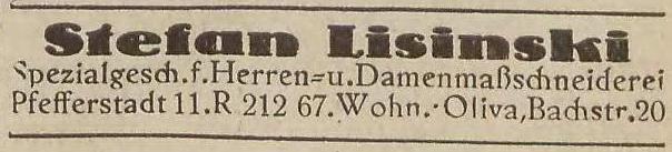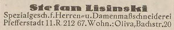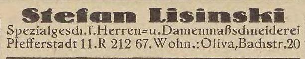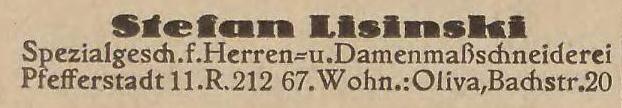 Stefan Lisinski. Książka adresowa z 1931 roku. Zbiory Pomorskiej Biblioteki Cyfrowej.