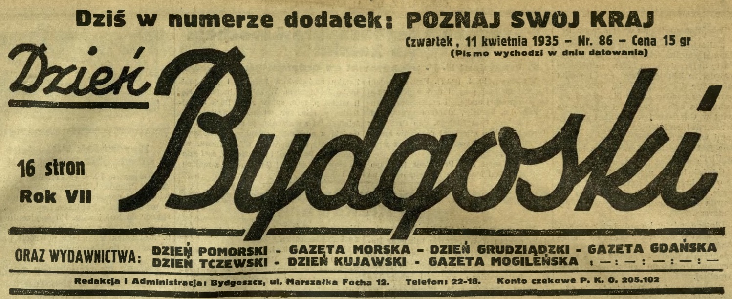 Walter Graeske. "Dzień Bydgoski" z 11 kwietnia 1935 roku (strona nr 6). Przekazała Grażyna Niemyjska.