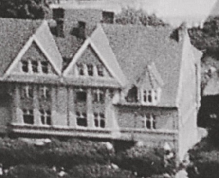 Fragment z pocztówki lotniczej. Od lewej budynki: nr 1, 2 i 3. Przełom lat 20/30 XX wieku. Zbiory Piotra Leżyńskiego.
