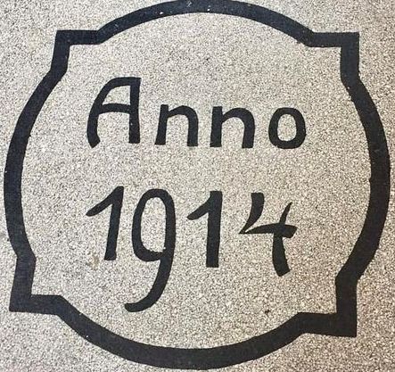 Anno 1914 - data budowy na posadzce w klatce budynku. FB Isabella Andruszkiewicz.