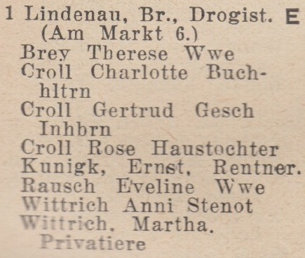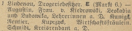 Elisabeth Lindenau. Książka adresowa z 1939 roku. Zbiory Krzysztofa Gryndera.