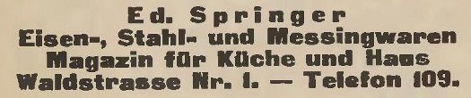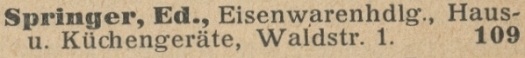 Eduard Spinger. Eisenwarenhandlung. Książka telefoniczna z 1916 roku. Zbiory Mirosława Piskorskiego.