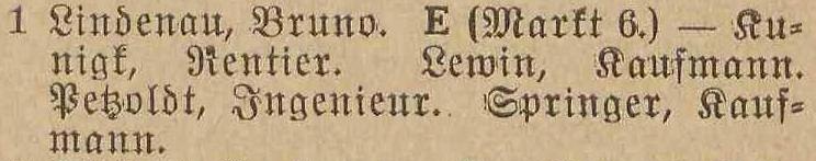 Bruno Lindenau. Książka adresowa z 1935 roku. Zbiory Pomorskiej Biblioteki Cyfrowej.