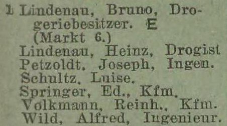 Bruno Lindenau. Książka adresowa z 1928 roku. Zbiory Pomorskiej Biblioteki Cyfrowej.