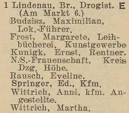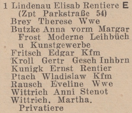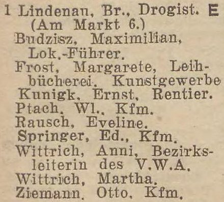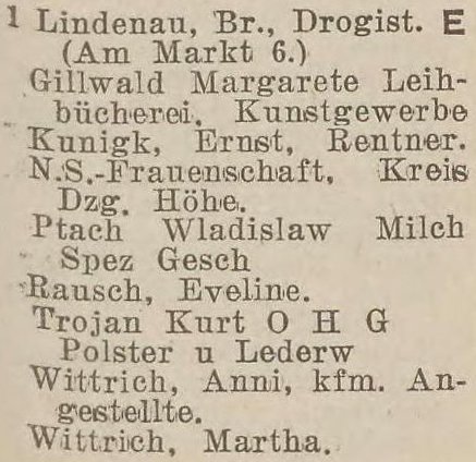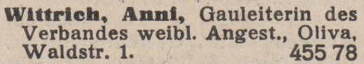 Anni Wittrich. Książka telefoniczna z 1937 roku. Zbiory TPG Strefa Historyczna WMG.