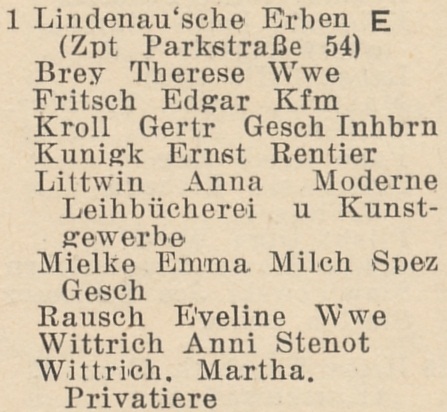 Erben Lindenau'sche (Zoppot). Książka adresowa z 1942 roku. Zbiory Pomorskiej Biblioteki Cyfrowej.