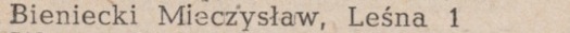 Adres: Leśna 1. Witold Szup. Źródło: , 01.1947 poz. 8.