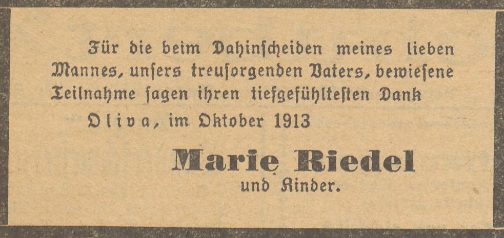 Maie Riedel. Olivaer Nachrichten nr 128 z 30. 10. 1913 r. Ze strony Polona.pl.